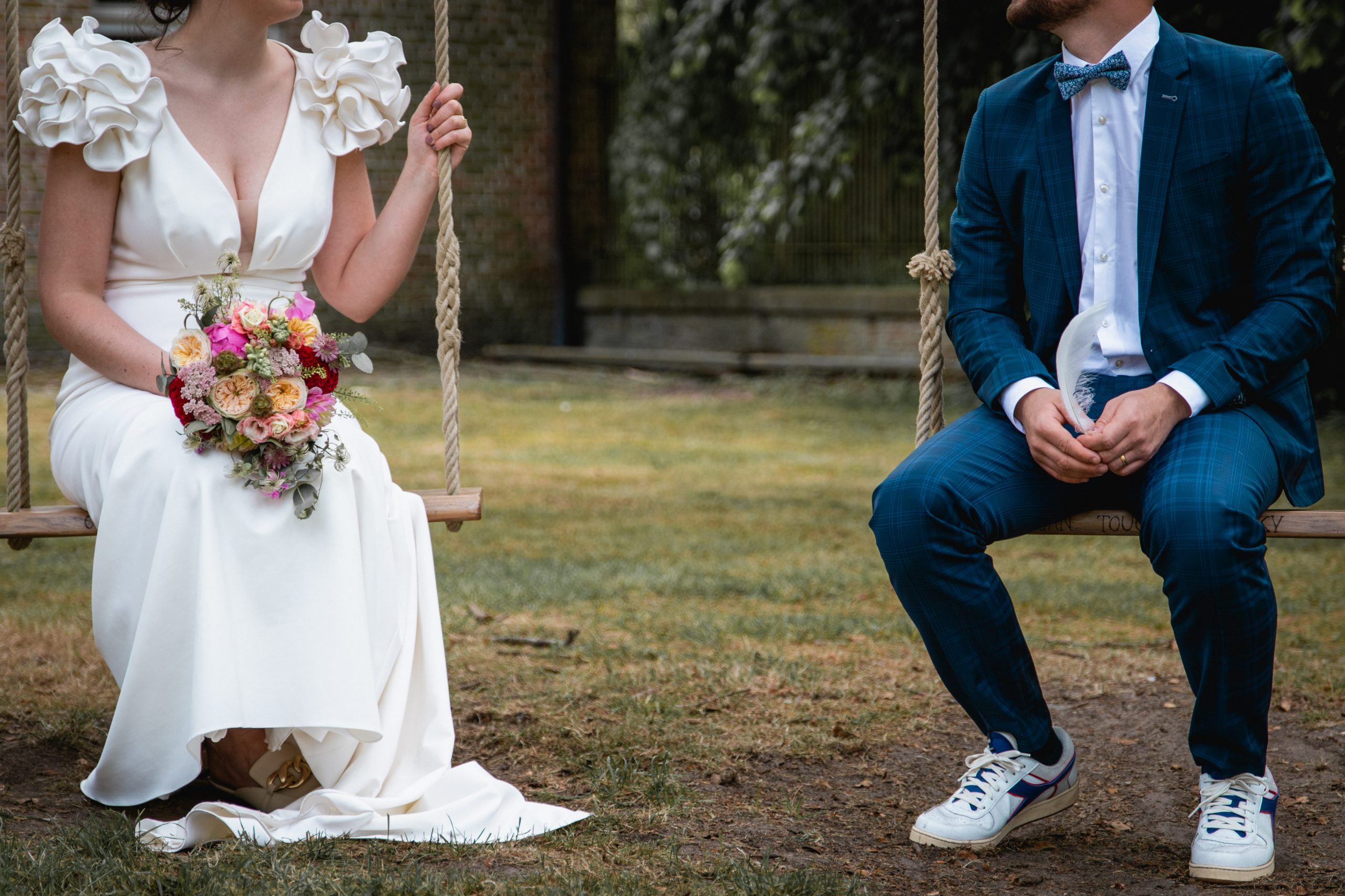 Nog een extra voordeel was de tijd die we hadden voor een uitgebreide koppelshoot. Ze kozen een prachtige locatie met een bloemenpluktuin. Wat een logische keuze was voor hen. De bloemen waren helaas nog niet in bloei. Het kasteel biedt echter wel prachtige hoekjes en kantjes. Het kwam al snel duidelijk dat we met een uur niet zouden toekomen. De liefde spatte ervan af, ze lieten me met alle plezier langer dan voordien afgesproken fotograferen.